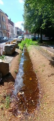 Deze wadi bestaat uit verschillende soorten beplantingen om de biodiversiteit te versterken. De aanleg beperkt het risico op wateroverlast in de Dupréstraat.